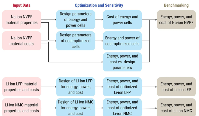 The study presents a novel method that integrates physics-based models with cost models to optimize the energy, power, and cost of sodium-ion (Na-ion) battery packs. This comprehensive approach provides a detailed analysis and significant improvements in Na-ion batteries, positioning them against the more commercially mature lithium-ion (Li-ion) batteries.
