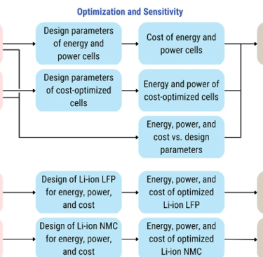 • Optimized electrode thicknesses and porosities for energy, power, and low-cost cells