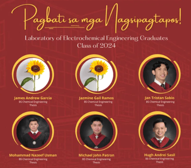 It is with a great sense of pride and honor that we ceLEEbrate this significant academic milestone of our laboratory members who graduated this Academic Year 2023-2024. The achievements of our successful graduates are nothing less than extraordinary! May you bring with you all that you have learned from the lab and apply the same to your future research endeavors and professional careers.