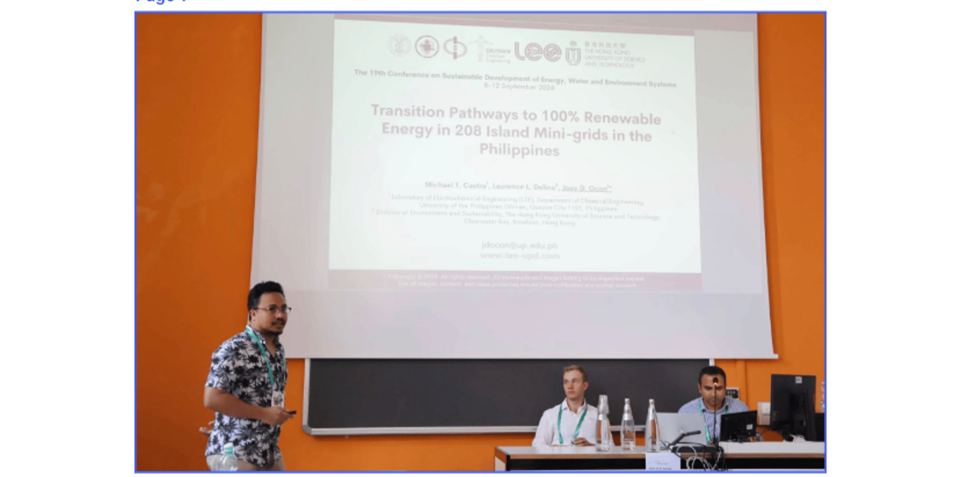 Prof. Joey Ocon attended and presented their research on transition pathways to renewable energy at the 2024 SDEWES (Sustainable Development of Energy, Water, and Environment Systems) Conference in Rome, Italy last September 8-12, 2024. The paper, co-authored with Michael Castro and Prof. Laurence Delina, examines strategies for transitioning off-grid islands in the Philippines to renewable energy (RE) systems.