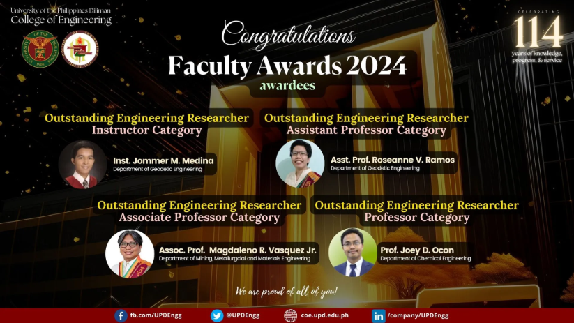 This award shows Professor Ocon's commitment to inspiring future generations of engineers and researchers at the University of the Philippines, shaping the landscape of engineering education and research in the country.