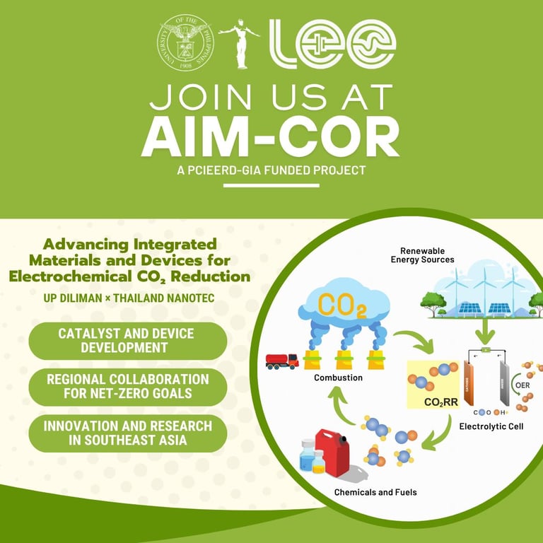 A collaboration between UP Diliman and Thailand’s National Nanotechnology Center — advancing CO₂ reduction through cutting-edge catalyst and device development. This initiative combines regional expertise to drive net-zero goals, foster innovation, and build scientific capacity in Southeast Asia.
